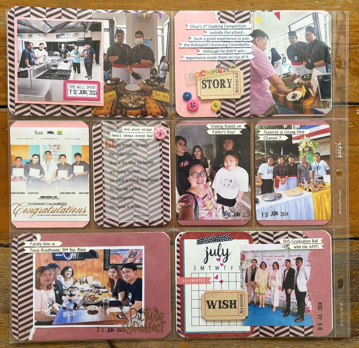 We got lots of holidays this month and took advantage of doing my album cabinet once again. I have been looking at my old pages and did a lot of button sewing and gluing falling letters and embellishments, I also dusted off my pages and changed a lot of broken page protectors. With this, I think I have gone through a lot of my backlogs and I feel pretty much accomplished for now.